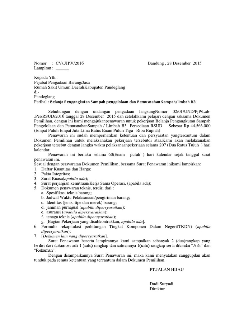 Surat Penawaran from imgv2-2-f.scribdassets.com Salah satu contoh surat resmi adalah surat penawaran. Dalam dunia bisnis, penawaran akan selalu ada antara pihak satu dengan pihak lainnya. Hal ini memperlihatkan bahwa sebuah perusahaan atau seseorang itu mampu atau bisa membuat sesuatu yang tidak ada pada orang lain, baik itu produk atau pun jasa yang dikuasai. Teknik perbaikan, pemasangan dan perawatan jl. 14th maret 2021 5 min read. Makmur kencana dengan menyertakan beberapa dokumen sebagai bahan pertimbangan. Contoh surat penawaran jasa website toko online. Pada kesempatan kali ini kami akan membahas secara lengkap terkait surat penawaran.