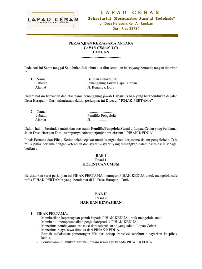 Contoh Surat Perjanjian Kerjasama Usaha Cafe - Contoh Surat Perjanjian Kerjasama Usaha Cafe Download Boemei Ri - Berikut penjelasan lebih lanjut cara membuatnya!